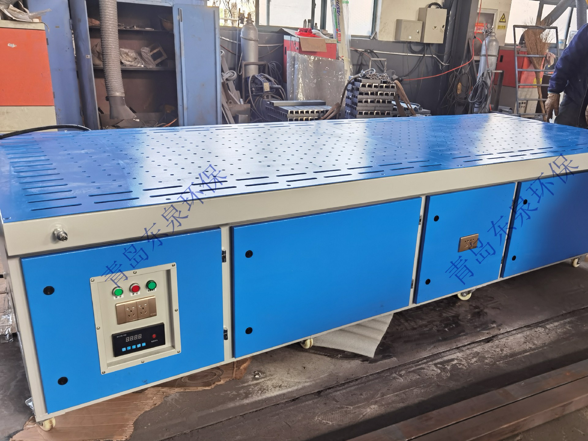 打磨除塵工作臺是針對機械加工廠、汽車總裝廠、維修廠及其相關(guān)行業(yè)焊接作業(yè)時各種焊接、拋光、打磨和工件去毛刺、等離子切割需處理而設(shè)計的輕便高效的除塵設(shè)備,適用于草、醫(yī)藥、食品加工、建材、冶金、化工、電力、機械制造、鑄造等行業(yè)生產(chǎn)過程中產(chǎn)生的煙塵、粉塵;操作者長時間在高濃度煙塵、粉塵煙氣、油霧環(huán)境下工作,吸入過量有毒物質(zhì),將會引起頭痛、惡心、哮喘、慢性支氣管炎等癥狀,嚴(yán)重影響身體健康的同時也影響正常生產(chǎn),東泉環(huán)保生產(chǎn)的設(shè)備在此背景下應(yīng)運而生。