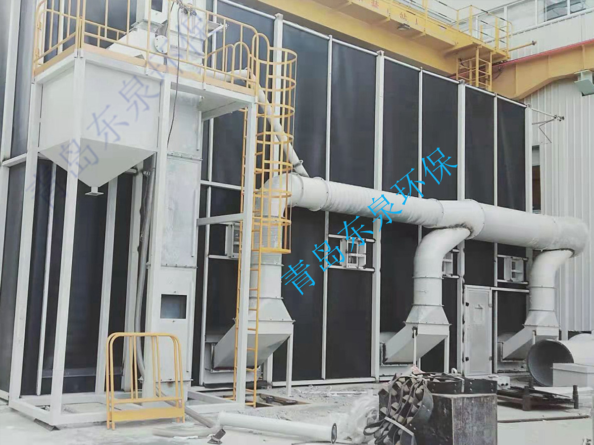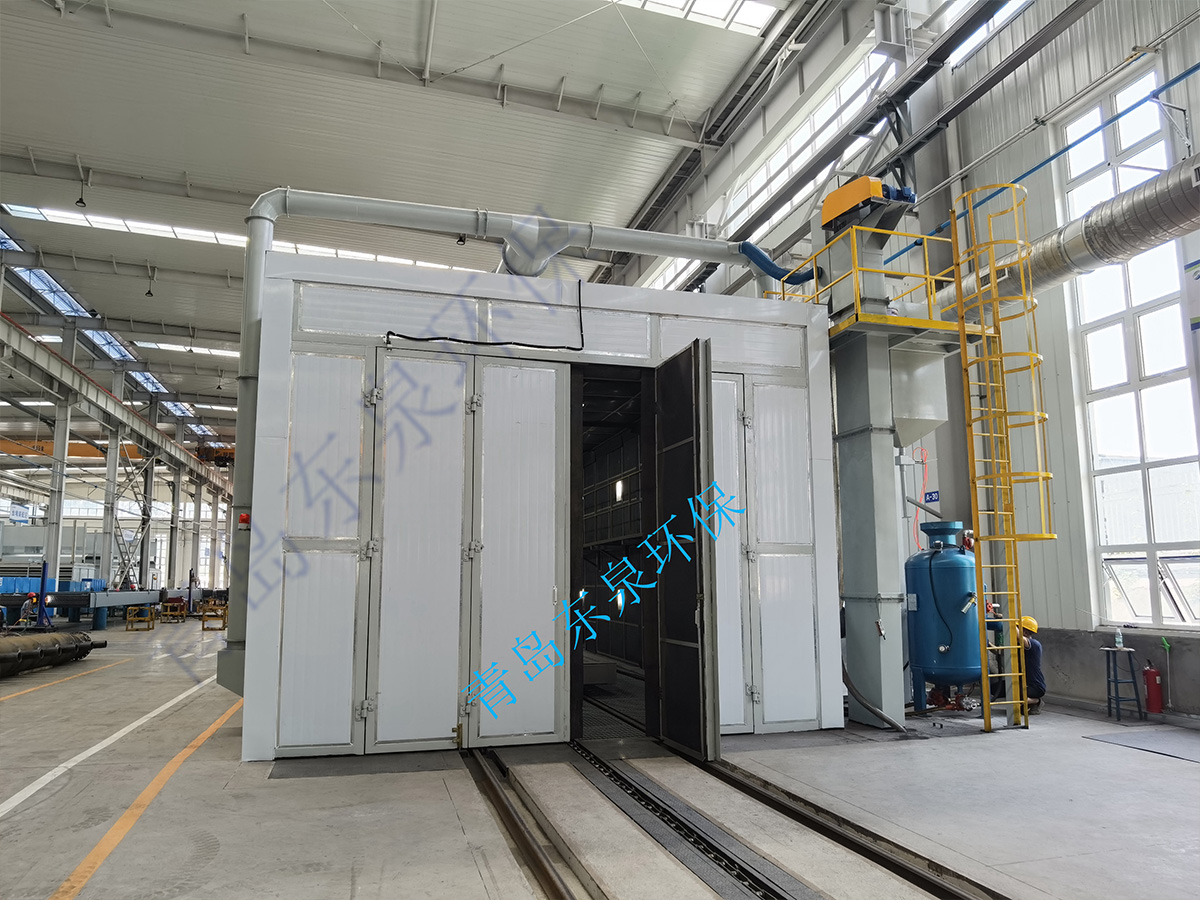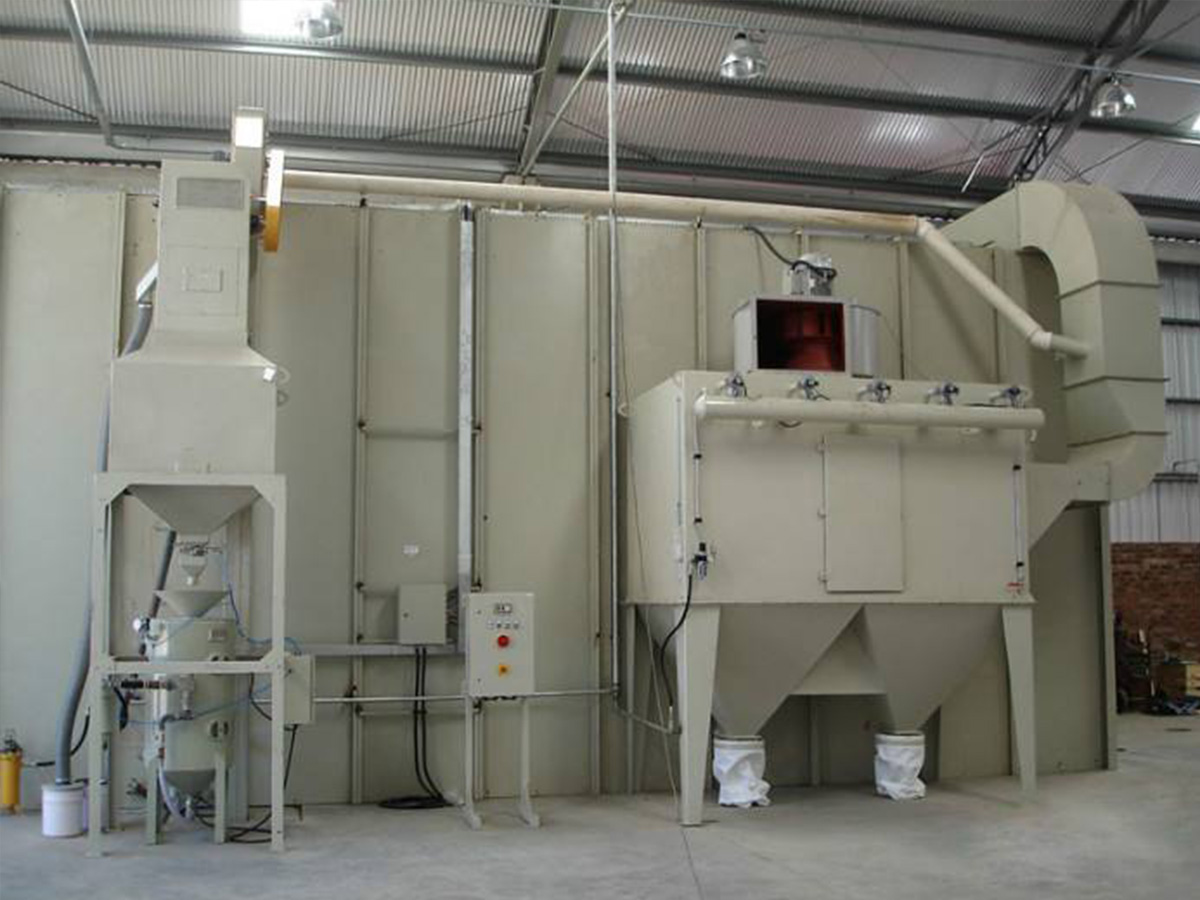 砂料回收、分離及除塵系統(tǒng)的工作原理:噴砂時(shí)砂料掉落到蜂窩漏斗里,再由氣缸帶動(dòng)刮板往復(fù)運(yùn)動(dòng),使落入漏斗內(nèi)的砂料推送到噴砂房一端的螺旋輸送機(jī)里面,通過(guò)螺旋輸送機(jī)輸送到皮帶輸送機(jī)內(nèi),皮帶輸送機(jī)等把砂料送入風(fēng)選分離器中,風(fēng)選分離器將砂料分離至儲(chǔ)料斗,從而保持砂料的清潔度和純度,有用的砂料進(jìn)入儲(chǔ)砂罐內(nèi)繼續(xù)循環(huán)使用,粉塵及污物則隨氣流進(jìn)入除塵系統(tǒng)內(nèi),經(jīng)過(guò)除塵系統(tǒng)的過(guò)濾、干凈空氣排入大氣,粉塵及污物則儲(chǔ)存在粉塵筒中等待定期清理。